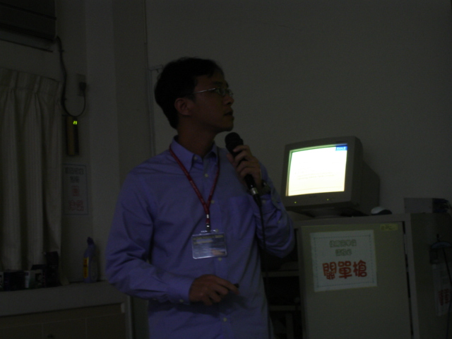 2007/12/22施老師主辦的會議 施奇廷老師在東海辦的2007 Winter Workshop on Low Dimensional Systems and Nanostructures。雖然是理論中心的會議,不過施老師也邀請了許多做實驗的研究人員,很榮幸我也受到他邀請,於是把我刊在PRB上有關短鍊MEH-PPV的研究拿出來報告,感謝施老師給我這個機會。 開個會怎麼曬得這麼黑,沒辦法,這是幾張照片中最好的了。以後有機會辦會議,照相還是要找比較有經驗的人負責,要不然把每個演講者都照成這樣,到時呈報的時候上面的說不定還說沒事幹麻找一大堆黑人來演講,我們國內是沒人嗎! |