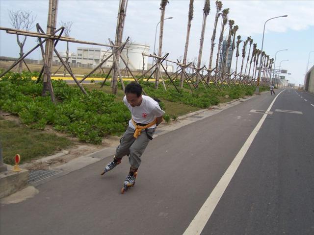 第一次溜新竹到台中,總計約97公里,剛好可以把西部濱海缺的一段補起來。這樣螢火蟲就從金山沿著西海岸線連到墾丁都已經挑戰完畢了,而我自己則是還缺台中到高雄這一段。 出發前自己先做了一個禮拜的特訓,每天自己持續溜20公里。當天雖然速度還是比不上領先集團,不過以配備來看,除了淡哥以外,其他的人都是用100mm的輪子,我用90mm的輪子如果要硬跟著他們,也一定很累。所以,我用自己的速度溜,雖然落後,但也不會差太遠。 |