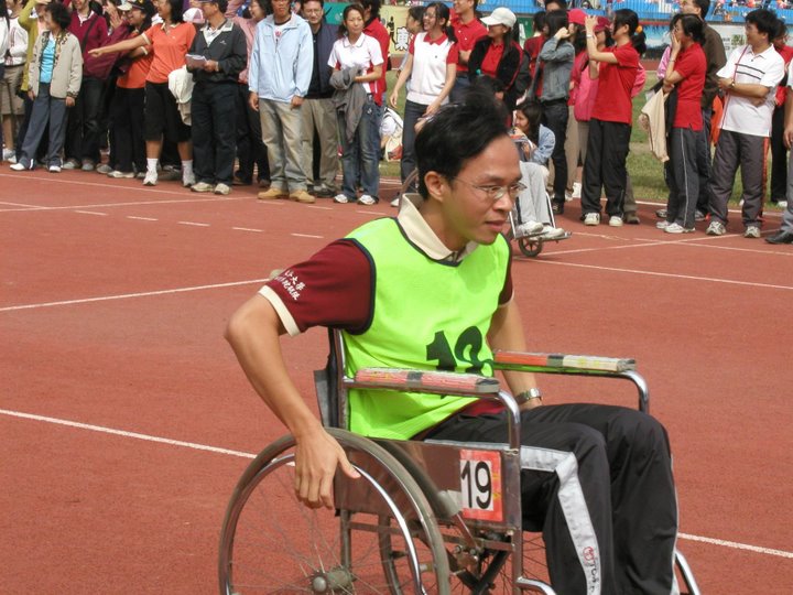 2007/11/2東海運動會 自從上了大學後就沒參加過運動會了,這次剛進東海就被排定要去湊人數,參加的人主要是新老師以及一些平常就有在運動的老師,而大學部的同學也大多由大一的新生代表參加。從列隊入場到大會表演再到比賽的過程,讓我有一種既陌生又熟悉的感覺。曾經我也在這樣的場合上繞場過,曾經我也在這樣的草地上表演過,曾經我也在這樣的跑道上馳騁過,不過感覺已經好遙遠了。 我原本是被告知要跑異程大隊接力,負責120公尺的部份,不過也不知道為什麼後來接到名單變成趣味競賽-推輪椅射氣球。也好,反正也好久沒跑了,不知道還跑不跑的動。看我推輪椅的英姿應該還不錯吧。 |